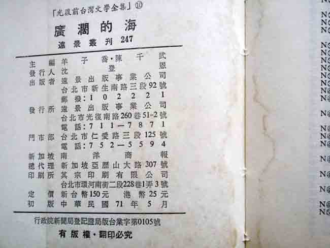 廣濶的海 光復前台灣文學全集10 遠景叢刊247