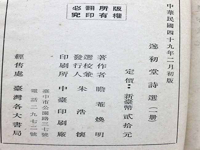 遂初堂詩選 發行者簽贈本